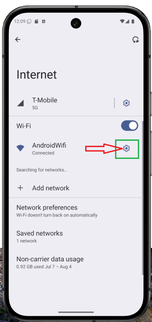 Find your connected Wi-Fi network and tap the gear icon next to it.